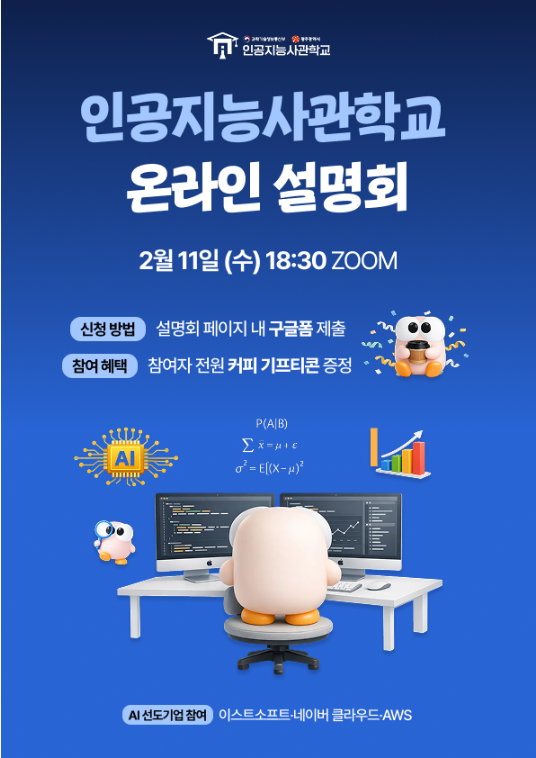 | 제목 | AI 커리어가 궁금하다면? 2026 인공지능사관학교 온라인 설명회 OPEN! | ||