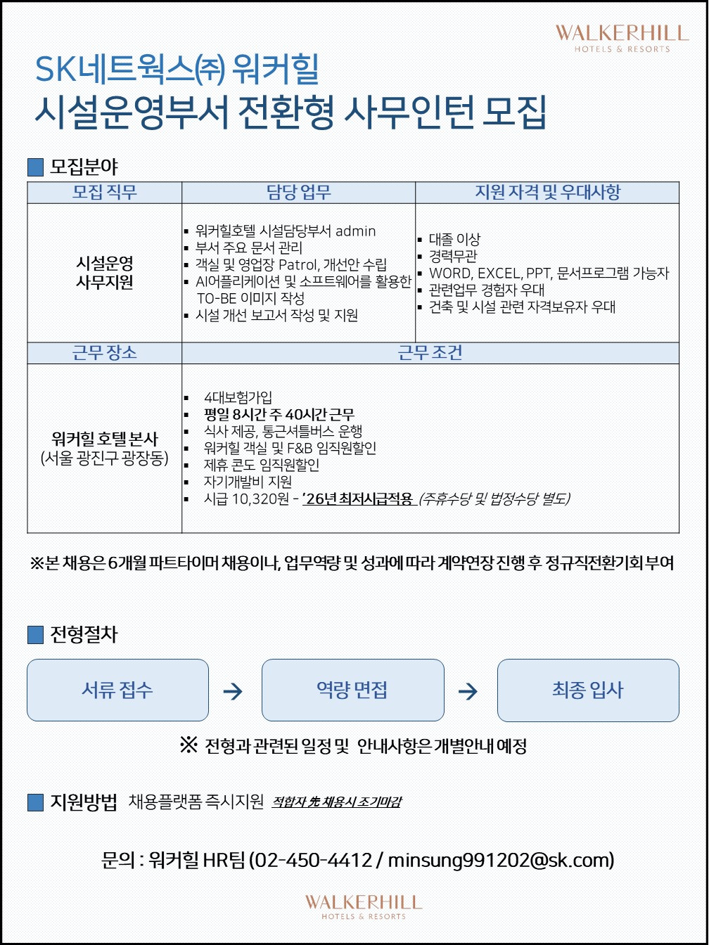 - 모집직군 : 사무직군 (시설부서 사무직)
